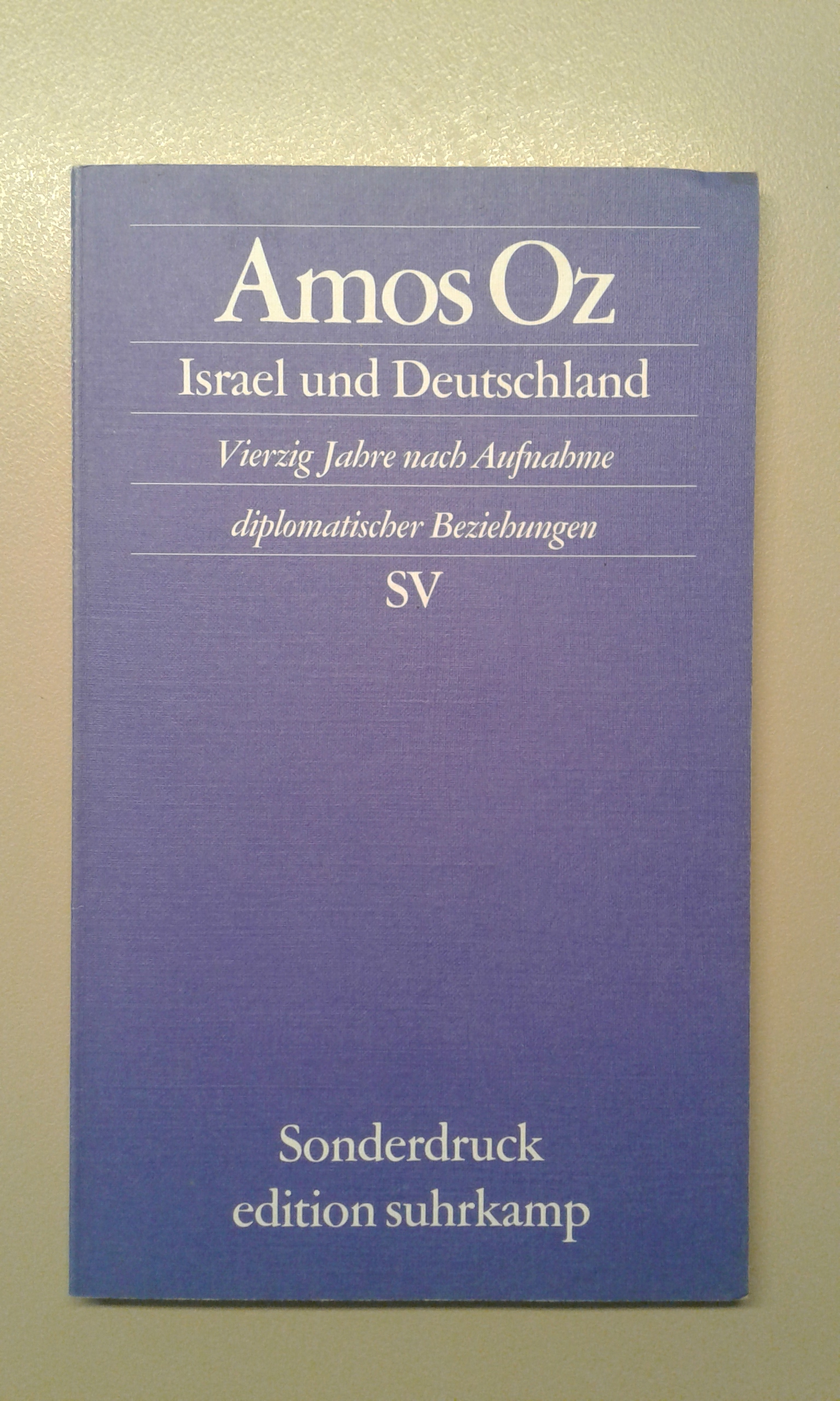 ?Oz, Amos: Israel und Deutschland. vierzig Jahre nach Aufnahme diplomatischer Beziehungen. Erstausg., 1. Aufl. Frankfurt am Main, Suhrkamp, 2005. 20 cm. [54] S. Pb. Edition Suhrkamp; Sonderdruck. Versandkosten: 1,90 EUR