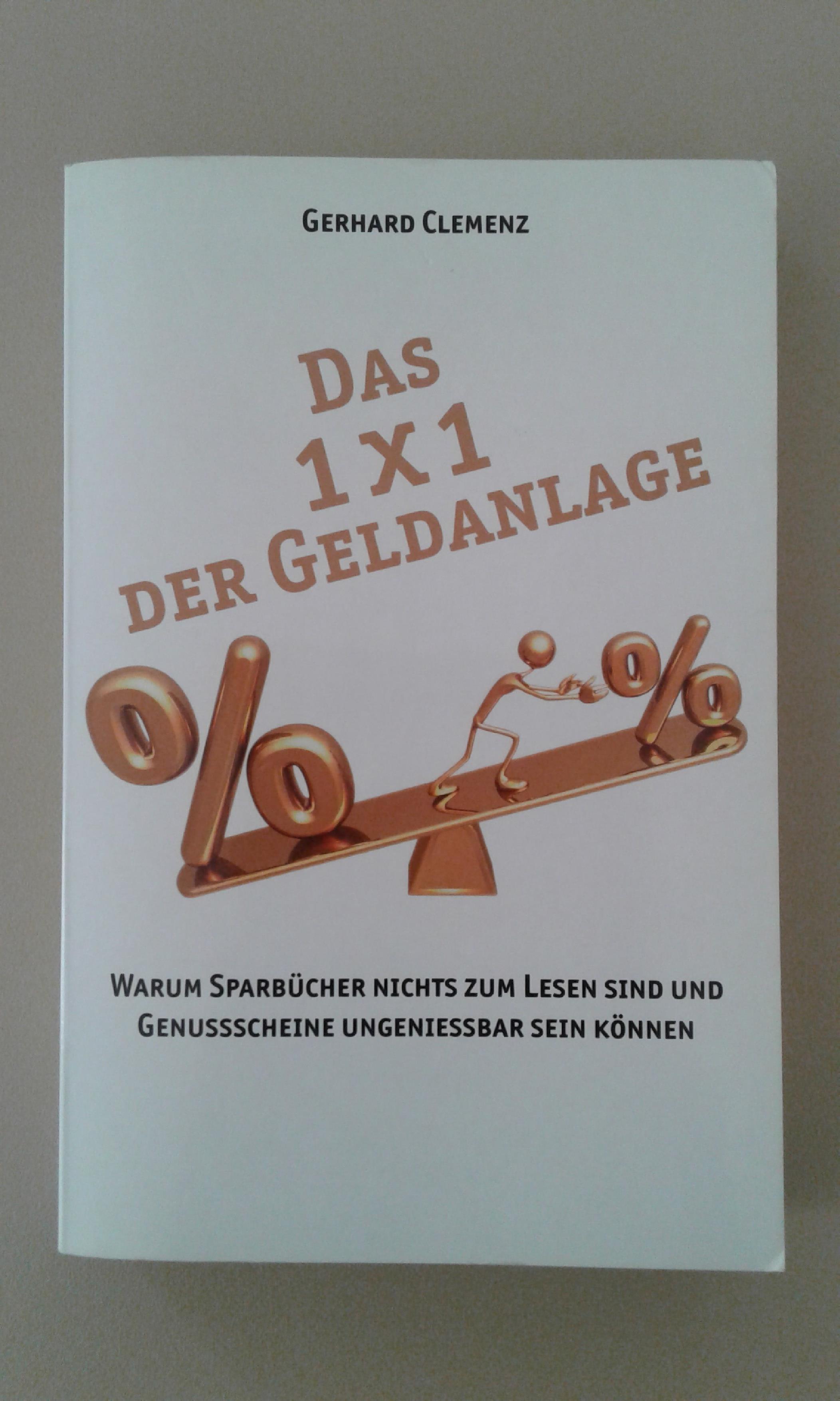 Clemenz, Gerhard: Das 1x1 der Geldanlage. warum Sparbücher nichts zum Lesen sind und Genussscheine ungenießbar sein können. 1. Aufl. Weinheim, Wiley-VCH-Verl., 2012. 22 cm. 337 S. kart. Versandkosten: 2,67 EUR